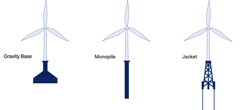 - Generally classified into three main types: gravity base, monopile, and jacket substructures