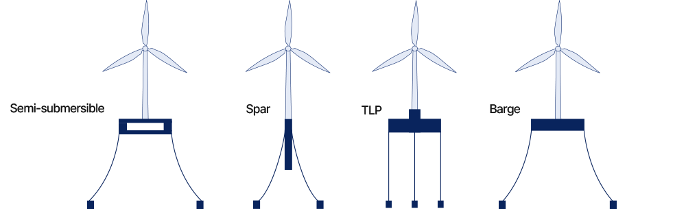 - Generally classified into four main types: semi-submersible, spar, TLP, and barge