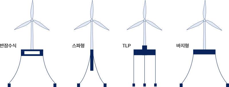 - 상부 풍력터빈과 타워를 해상에서 안전하게 지지하기 위한 해상구조물